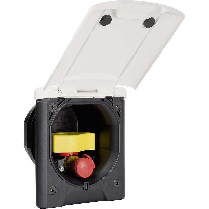 Gas-Außensteckdose von ABL in Weiß – ideal für sichere Gasanschlüsse im Außenbereich. Der UV-beständige Klappdeckel mit Magnetverschluss schützt zuverlässig vor Witterung und Schmutz. Der leicht zugängliche Absperrhahn ermöglicht schnelle Bedienung und Wartung.