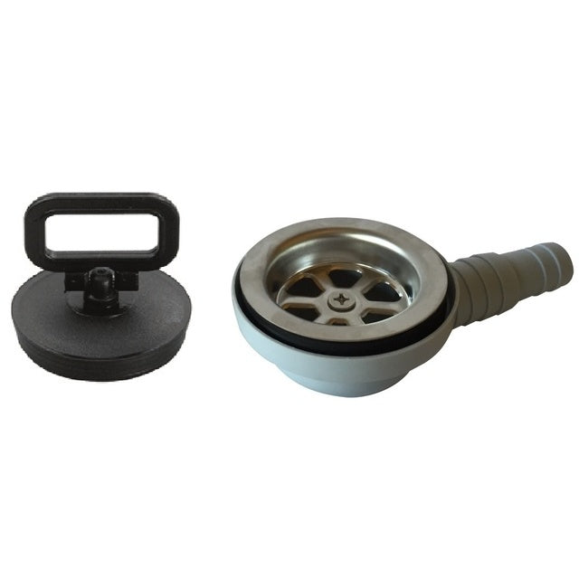 Robuster CAN Ablauf mit Stöpsel, 1 1/2 Zoll und 90°-gewinkeltem Abgang – ideal für Einbauspülen der Marke CAN. Kompaktes Design spart Platz im Unterschrank und sorgt für zuverlässigen Wasserabfluss.
