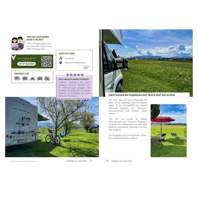 Jeder Platz wird mit Fotos, ausführlichen Beschreibungen, Ausstattungsmerkmalen, Ortsangaben und Bewertungen präsentiert. QR-Codes ermöglichen direkte und spontane Buchungen – sogar am Anreisetag.