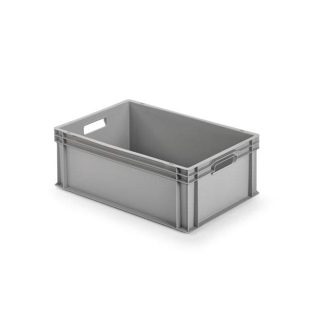 Hergestellt aus hochwertigem Polypropylen in der schicken Farbe grau, überzeugt dieser Behälter durch seine hohe Traglast von bis zu 80 kg. Dank der stapelbaren Funktion können mehrere Behälter platzsparend übereinander gestapelt werden, was ihn ideal für den Einsatz in Lagerräumen oder während des Transports macht.
