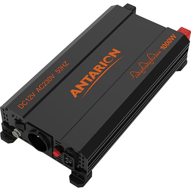ANTARION Pur Sinus Inverter 1000 W – zuverlässiger Wechselrichter für Camping, Wohnmobil, Boot, Solar- und Notstromanwendungen. Reiner Sinus sorgt für saubere 230 V Spannung, ideal für empfindliche Elektronik wie Laptops, Kameras und Haushaltsgeräte.