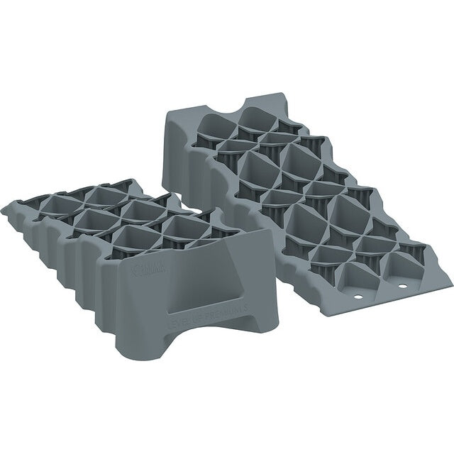 Im Lieferumfang enthalten sind zwei Stück Auffahrkeile und eine praktische Tragetasche aus 100 % Polyester, ideal für die nächste Campingreise oder im Alltag.