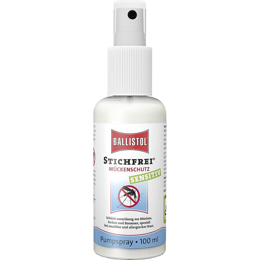 BALLISTOL Stichfrei Sensitive Pump-Spray 100 ml bietet sanften, wirksamen Insektenschutz für empfindliche und allergische Haut. Mit 9,8 % Icardin schützt es bis zu 6 Stunden vor Mücken, Bremsen und Zecken und wird vom DAAB (Deutscher Allergie- und Asthmaverbund e.V.) empfohlen.