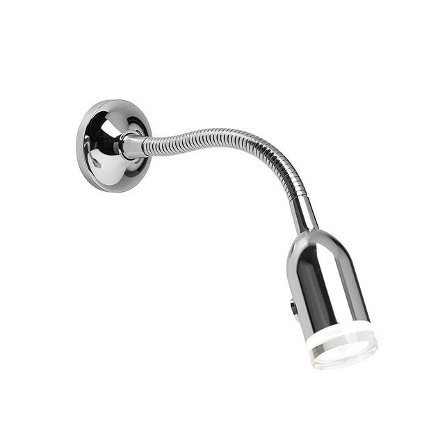 Erleben Sie die exquisite Schwanenhalsleuchte DOMETIC L70TM in edler Chromoptik. Diese LED-Leuchte überzeugt durch ihren modernen Touch-Schalter und die indirekte Beleuchtung, die ein angenehmes Nacht-Orientierungslicht in Blau bietet – ganz nach Bedarf auch abschaltbar.