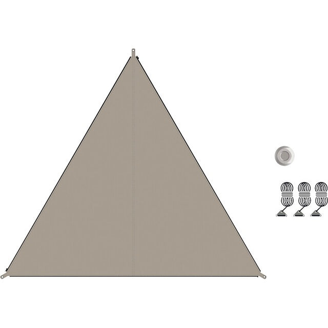 - Lieferumfang: Inklusive 1 Sonnensegel, 1 Tragetasche mit Kordelzug, 3 Abspannleinen mit Aluminium Dreilochspanner inklusive Beutel, Gestänge-Tasche, Grundplatte für optionales Gestänge