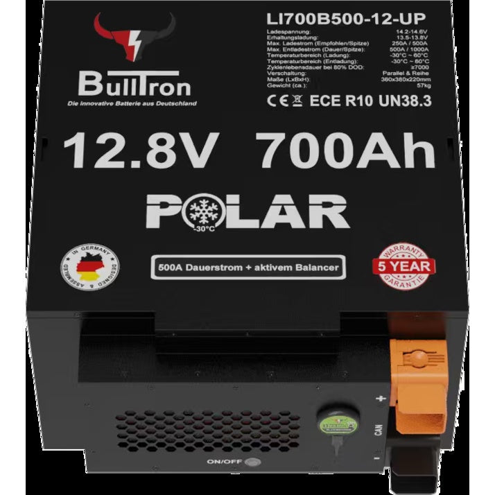Die Polar Untersitz-Batterie 700 Ah ist eine kompakte Lithium-Bordbatterie mit integriertem Smart BMS (BT/WiFi-App), 500A Dauerstrom, CAN-Bus und RS485 – ideal für Wohnmobile, Boote und Off‑Grid-Systeme.