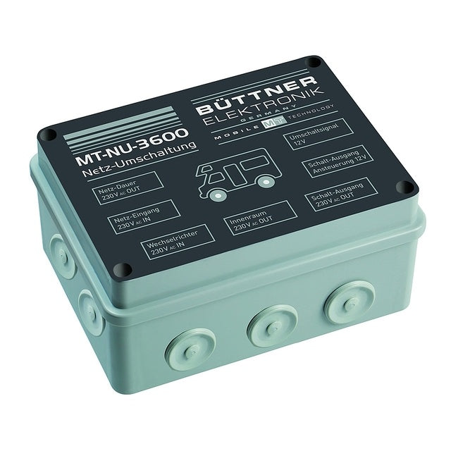 Die externe Netzumschaltung MT NU 3600 von Büttner Dometic ist eine intelligente Lösung für Reisemobile, die eine zuverlässige 230 V-Versorgung sicherstellt. Mit einer sehr hohen Schaltleistung und vielseitigen Anschlussmöglichkeiten optimiert diese Vorrangschaltung den Stromfluss, sei es über Landstrom oder autark mit einem Wechselrichter. Besondere Merkmale sind die einfache Ansteuerung über den Batterie-Computer MT 5000 iQ oder ein beliebiges 12 V-Steuersignal, sodass Sie jederzeit Ihr E-Bike-Ladegerät nutzen oder die Innenraum-Klimaanlage während der Fahrt betreiben können. Dank IP55 Schutzklasse ist diese Netzumschaltung perfekt für den Einsatz im Freien geeignet.