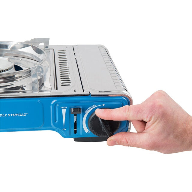 Leichter, kompakter Tischkocher Campingaz Camp'Bistro DLX – ideal für Picknick, Tagesausflug und Outdoor-Kochen. Robustes Aluminiumgehäuse und praktischer Kunststoffkoffer machen den Transport einfach.