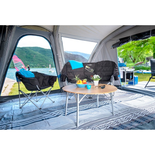 Das Faltsofa Action Rendevous ist das perfekte Möbelstück für Camping und Outdoor-Aktivitäten. Mit seinem komfortablen Design für zwei Personen bietet es einen idealen Platz zum Entspannen im Vorraum von Zelten oder Vorzelten. Dank des leicht abgewinkelten Faltgestells ist der Aufbau in Sekundenschnelle erledigt – ganz ohne spezielle Montage! Der bequeme, gepolsterte Sitz- und Rückenbereich sorgt für hohen Komfort, während der zentral angebrachte Organizerbereich mit zwei Gazetaschen praktischen Stauraum bietet. Der mitgelieferte Packsack ermöglicht eine einfache Aufbewahrung und den Transport. Mit einer maximalen Belastbarkeit von 120 kg ist das Faltsofa nicht nur vielseitig einsetzbar, sondern auch robust und langlebig. Genießen Sie entspannte Momente in der Natur mit diesem hochwertigen Faltsofa von BRUNNER!