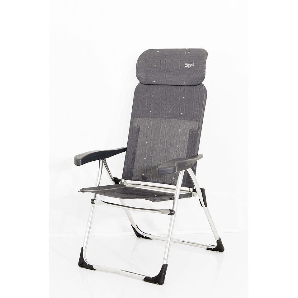 Der Klappsessel Crespo Compact ist der ideale Begleiter für Campingabenteuer. Mit einem kompakten Packmaß von nur 5 cm bietet dieser Stuhl maximalen Komfort und eine 7-fach verstellbare Rückenlehne. Das U-Gestell mit stabilisierenden Füßen gewährleistet außergewöhnliche Stabilität, während das ausziehbare Kopfteil zusätzlichen Komfort bietet. Der Bezug aus leicht zu reinigendem Multifiber macht ihn perfekt für den Einsatz im Freien. Ob im Zeltanhänger oder Buscamper, dieser extra flach klappbare Stuhl ist einfach zu transportieren und verstauen.