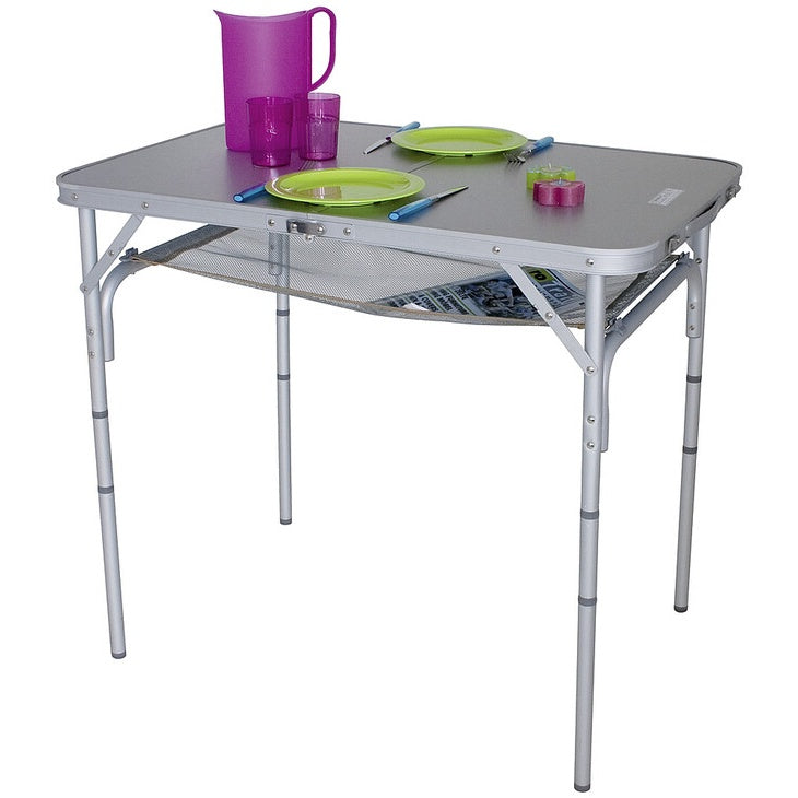 Entdecken Sie den Eurotrail Monnai Klapptisch in grau - ideal für Ihr nächstes Abenteuer! Mit einer praktischen Netzablage und höhenverstellbaren Tischbeinen ist er perfekt für unterschiedlichste Anwendungen im Freien.