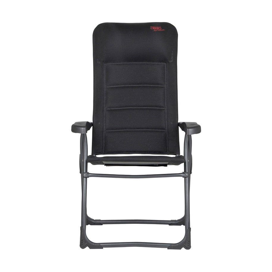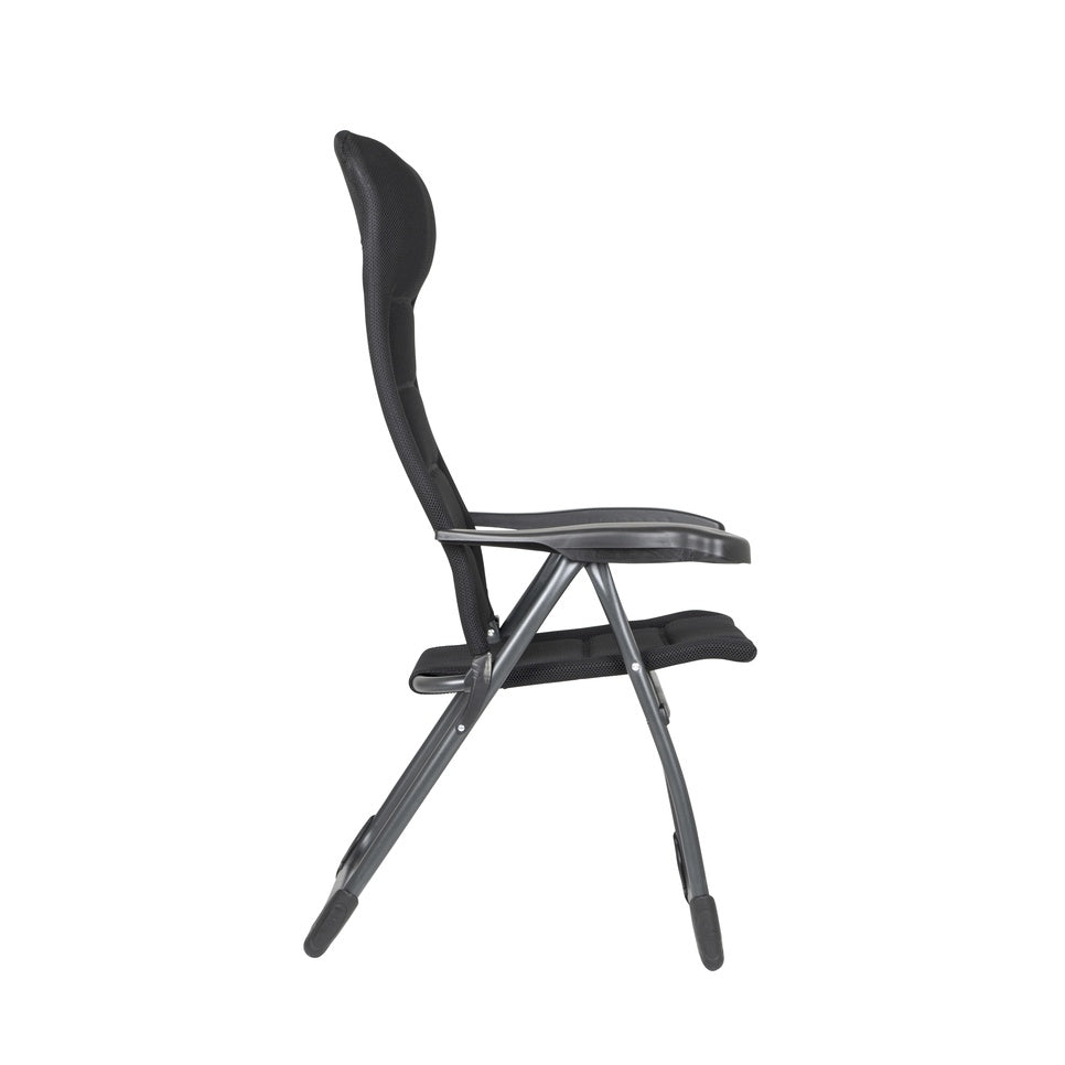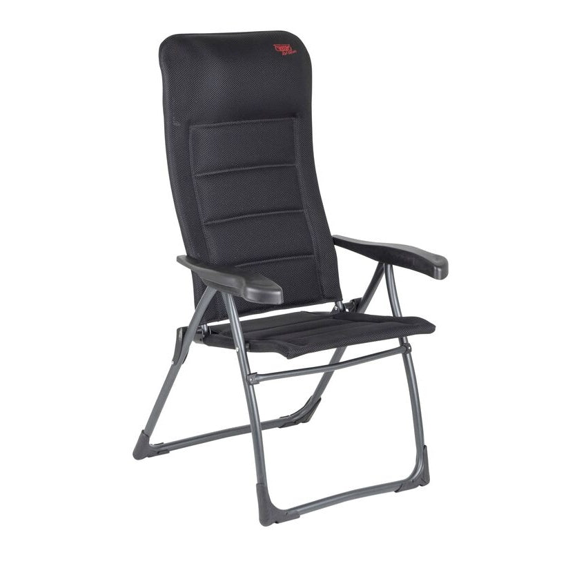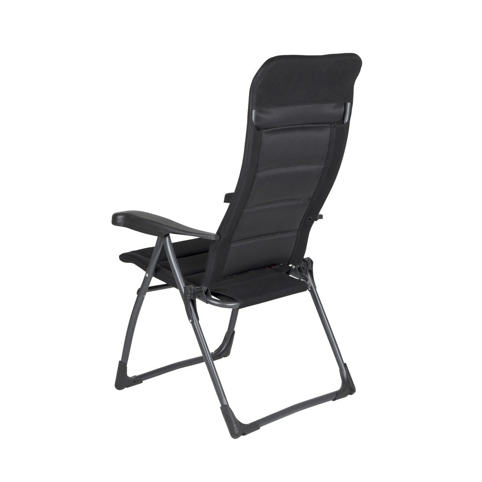 Erleben Sie den ultimativen Komfort mit dem CRESPO Air Deluxe Campingstuhl in edlem Schwarz. Dieser Klappstuhl vereint_design, Qualität und Funktionalität auf perfekte Weise. Dank der 7-fachen Verstellbarkeit können Sie die Sitzposition individuell anpassen, während die integrierte Kopfstütze zusätzlichen Komfort bietet.
