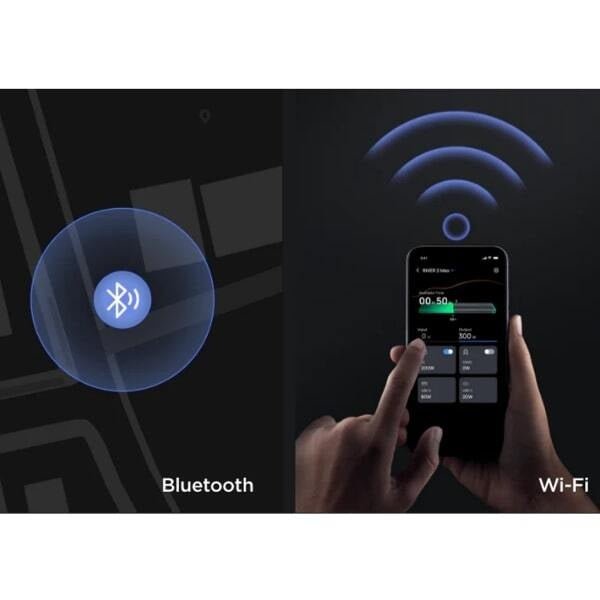 Intelligente Steuerung: Verwalten Sie die Powerstation einfach über die EcoFlow-App via WLAN oder Bluetooth. So haben Sie die Kontrolle über Ihre Energiequelle direkt in der Hand.