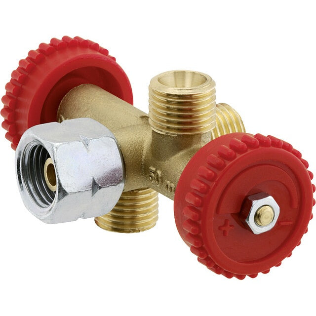Das Abzweigventil G 1/4 LH mit 2 Abgängen ist ideal für den gleichzeitigen Anschluss mehrerer Verbrauchsgeräte an einen Regler. Die hochwertige Bauweise garantiert Langlebigkeit und Zuverlässigkeit. Mit einer praktischen Absperreinrichtung und einem maximalen Druck von 4 bar ist es perfekt für verschiedene Anwendungen im Gasbereich.
