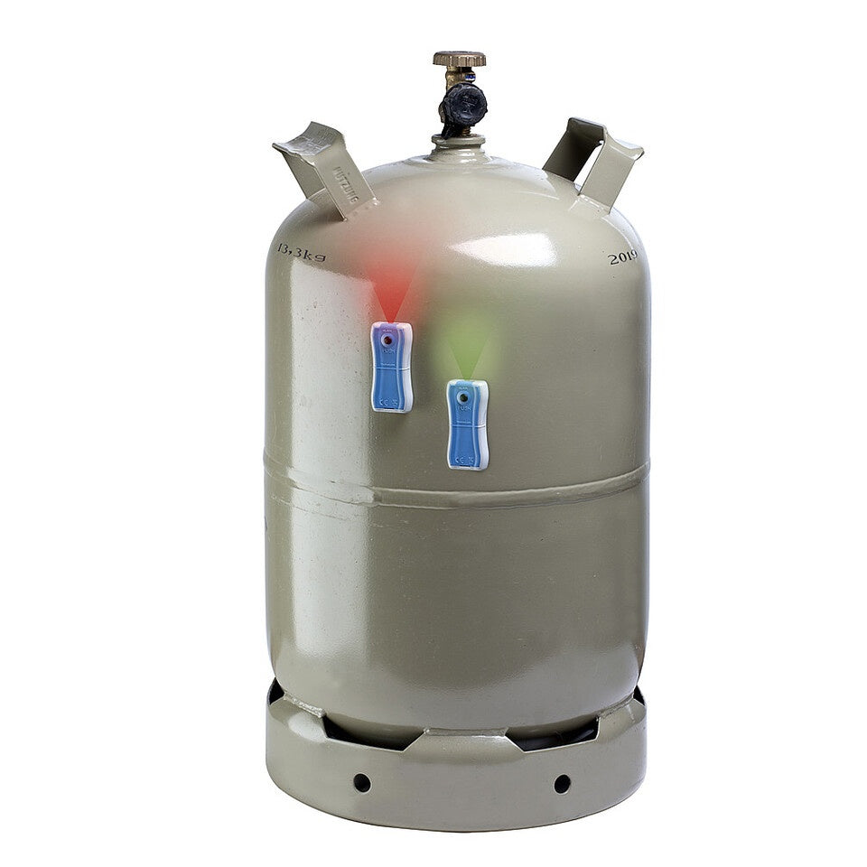 Dank des rückseitigen Magneten lässt sich der Gaslevel einfach und sicher an der Flasche anbringen. Die Signalleuchte wechselt je nach Füllstand zwischen rot und grün, sodass Sie immer informiert sind. Auch für Alu-Flaschen geeignet!