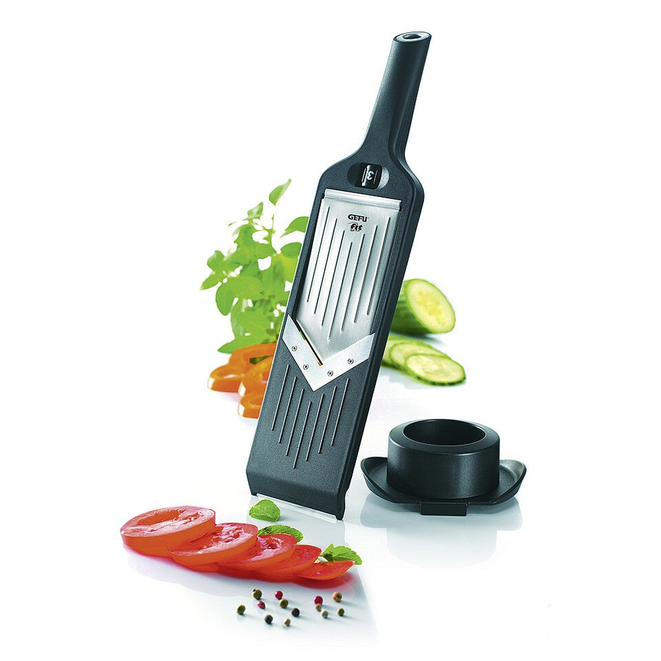 Entdecken Sie den kompakten Gemüsehobel Violi von GEFU, der mit einem hochwertigen Edelstahlring ausgestattet ist, um ihn bequem an Ihrer Küchenreling aufzuhängen. Die Klinge aus japanischem Klingenstahl ermöglicht eine präzise und mühelose Zubereitung. Wählen Sie aus fünf einstellbaren Schnittstärken von 1 bis 5 mm, um das perfekte Ergebnis zu erzielen.