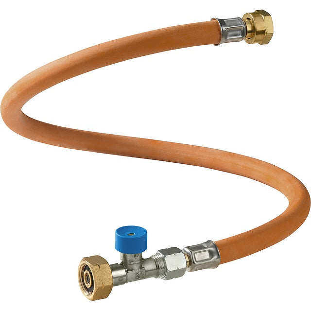 GOK Hochdruck-Schlauchleitung mit manueller Schlauchbruchsicherung (SBS) und Caramatic ConnectDrive X.7-Anschluss – speziell zum Heizen während der Fahrt und zum sicheren Anschluss an wandmontierte Niederdruckregler (AG M20 x 1,5).
