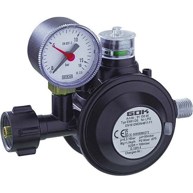 Robuster Niederdruckregler GOK Typ EN61-DS – speziell zum Anschluss an Gasflaschen und ideal für Gasgrills und mobile Kleinflaschenanlagen.