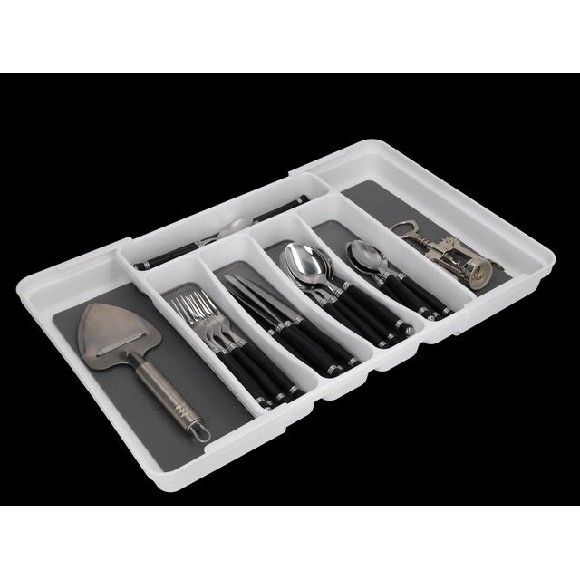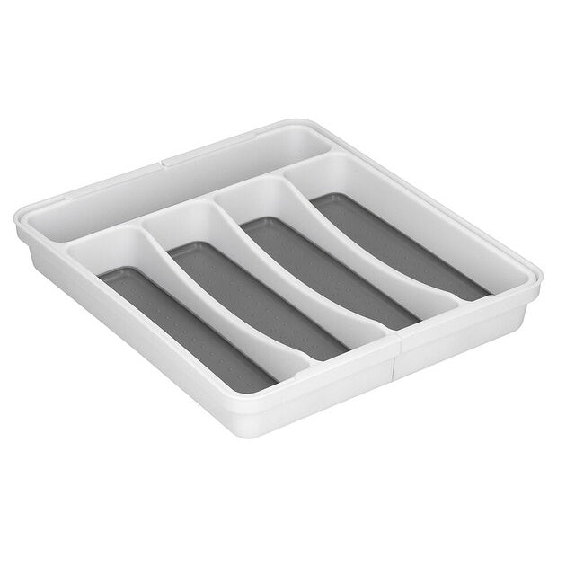 Entdecken Sie den praktischen Besteckkasten von H.A.B.A., der in elegantem weiß/grau gehalten ist. Mit seinen kompakten Maßen (Höhe: 5,2 cm, Breite: 30 cm, Tiefe: 33,2 cm) eignet sich dieser ausschiebbare Besteckkasten ideal, um Ihr Besteck platzsparend und ordentlich zu verstauen. Er ist nicht nur spülmaschinengeeignet, sondern auch aus robustem Polypropylen gefertigt, was ihn besonders langlebig macht. Perfekt für jede Küche, sorgt er für mehr Ordnung und Übersichtlichkeit. Machen Sie Ihre Kücheneinrichtung noch funktionaler!