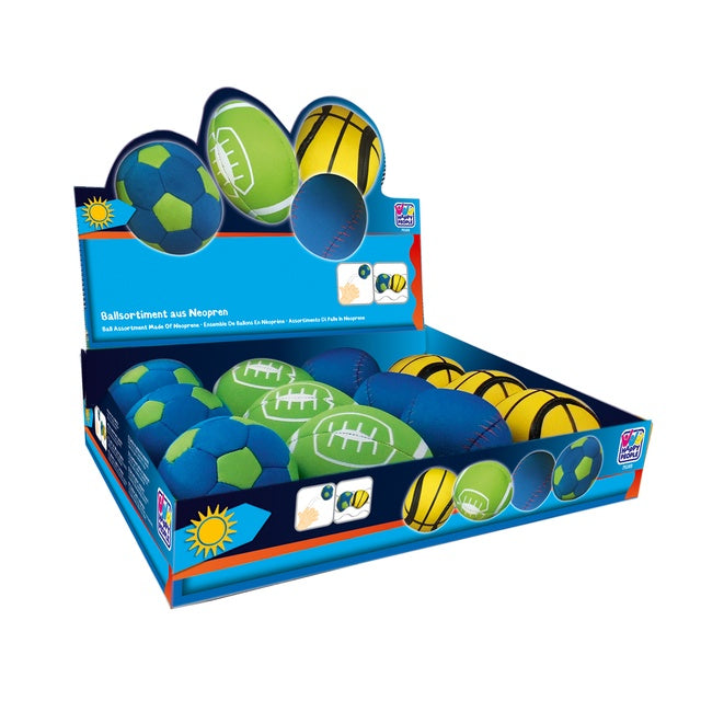 Das Ballsortiment HAPPY PEOPLE aus hochwertigem Neopren bietet eine ideale Größe von ca. 6-8 cm und eignet sich perfekt für verschiedene Sportarten wie Fußball, Basketball, Football und Baseball. Diese bunten und griffigen Bälle sind aus wasserfestem Material gefertigt, was sie zur idealen Wahl für Spielspaß im Freien macht. Egal, ob im Garten, Park oder am Strand – mit diesem Ballsortiment sind Sie bestens ausgestattet für unzählige Abenteuer. Bringen Sie Bewegung und Freude in den Alltag Ihrer Kinder!