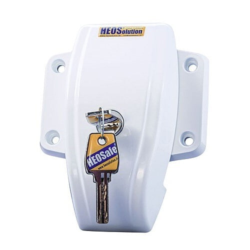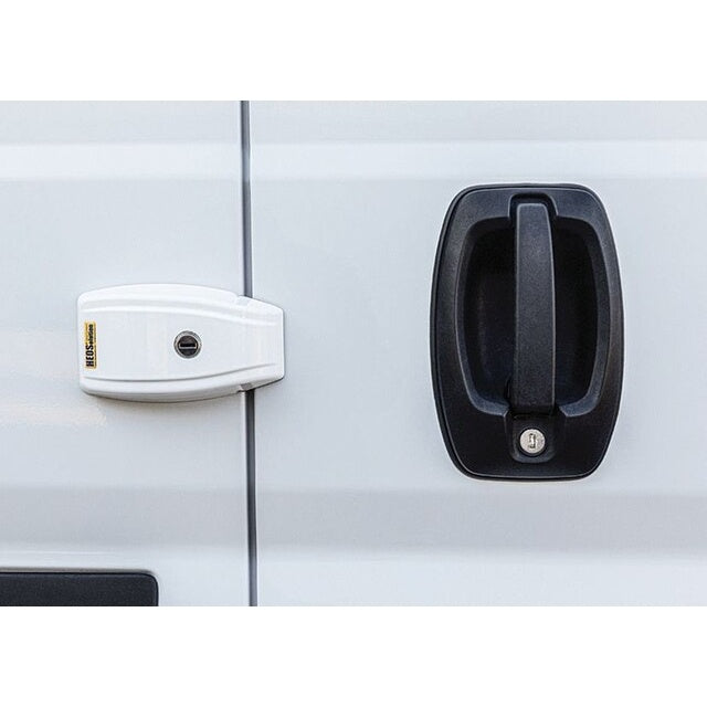 Verbessern Sie jetzt die Fahrzeugsicherheit – bestellen Sie das HEOSafe VAN Security Sicherheitschloss in Weiß.