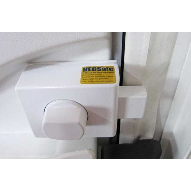 Wichtige Hinweise zum Betrieb unserer Türsicherungen HEOSafe®: 1. Achten Sie darauf, dass der Riegel der Türsicherungen HEOSafe® im geöffneten Zustand einer Tür nicht durch spielende Kinder oder aus Versehen betätigt wird. Sonst stößt nämlich beim Schließvorgang der Riegel gegen den Rahmen oder den Arretierbolzen und kann Beschädigungen hervorrufen. 2. Achten Sie darauf, dass sich Kinder oder Personen mit Behinderungen nicht einsperren, während sich diese alleine im Fahrzeug aufhalten. Lassen Sie in diesem Fall zur Sicherheit eine andere Tür (Fahrerhaustür, Hecktür) offen. 3. Wenn Sie sich im Fahrzeug befinden, dürfen die Fluchttüren nicht von außen zusätzlich mit HEOSafe® gesichert werden, weil bei Außenschlössern ein Öffnen von innen nicht möglich ist. 4. Bitte prüfen Sie vor jedem Öffnen der Schiebetüre unbedingt, ob der Schlüssel aus dem HEOSafe®–Schloss abgezogen ist, da dieser sonst abbrechen kann! 5. Während der Fahrt sollten Sie die HEOSafe® Türsicherungen nicht verriegeln, um im Fall eines Unfalls den Rettungskräften Zugang in das Fahrzeug zu ermöglichen.