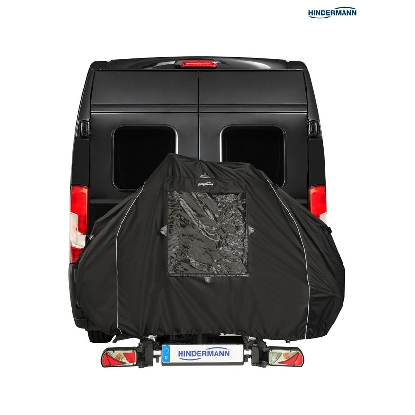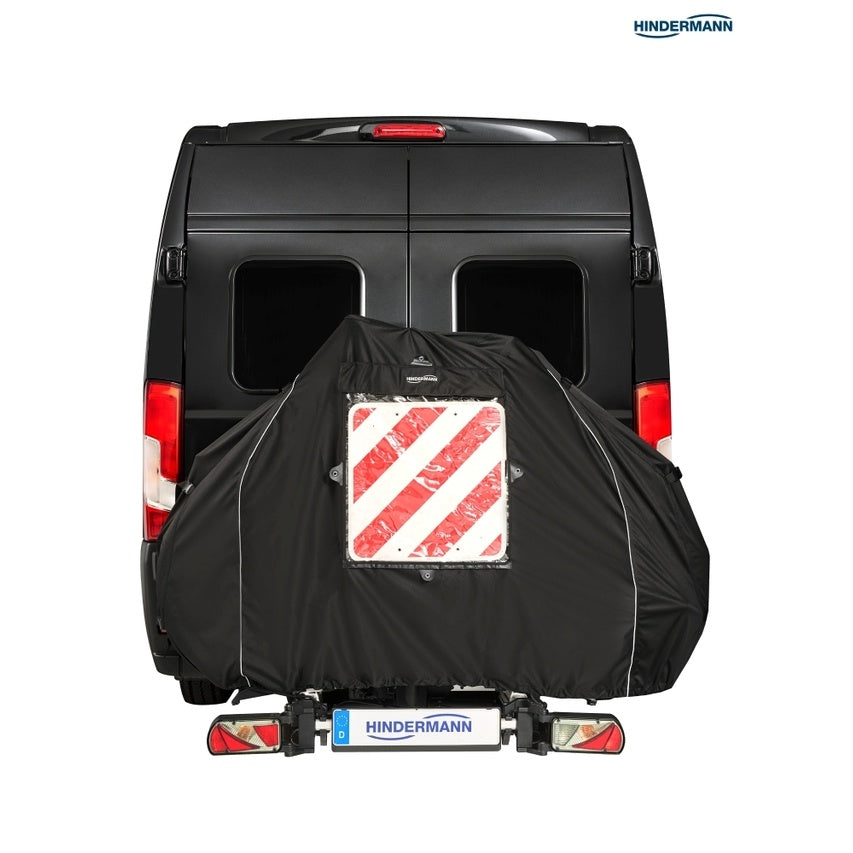 Die HINDERMANN Fahrradschutzhülle UNIVERSAL Blackline schützt bis zu 2 Fahrräder auf Deichsel- und Kupplungsträgern. Das moderne Blackline-Design und der integrierte reflektierende Keder erhöhen die Sichtbarkeit und sorgen für mehr Sicherheit im Verkehr.