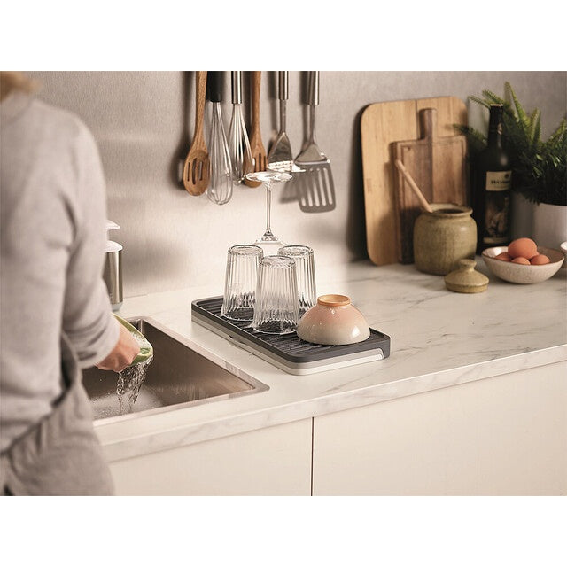 Entdecken Sie die ausziehbare Abtropfmatte von Joseph Joseph – Ihr unverzichtbarer Küchenhelfer! Mit einem durchdachten, 3-teiligen Design bietet diese Matte großzügigen Platz für Ihre Geschirrteile.