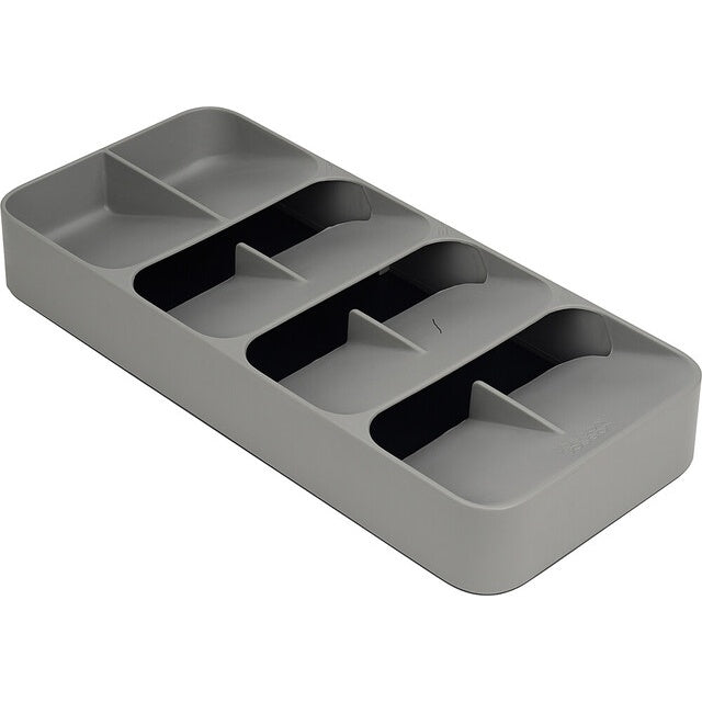 Der Joseph Joseph DrawerStore kompakte Besteckkasten in Grau schafft mehr Platz in Ihrer Schublade durch ein einzigartiges, abgewinkeltes und gestapeltes Fächersystem. Ideal als platzsparender Besteck-Organizer für moderne Küchen.
