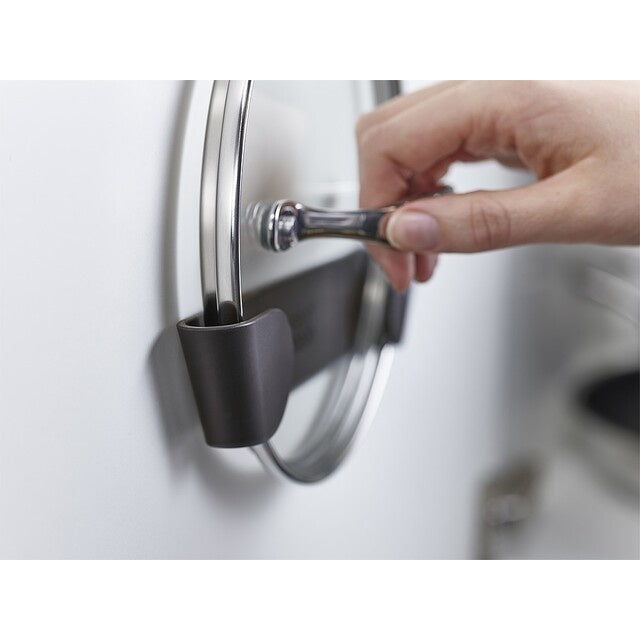 Die Topfdeckel-Halterung von Joseph Joseph ist die ideale Lösung für die platzsparende Aufbewahrung Ihrer Topfdeckel. Dieses Set besteht aus vier Halterungen, die ganz einfach an der Innenseite von Schranktüren oder tiefen Schubladen befestigt werden können. Dank des starken 3M VHB Klebebands ist die Installation ein Kinderspiel. Die Halterungen sind perfekt geeignet für Standarddeckel mit einem Durchmesser von 16 bis 24 cm und bieten eine praktische Möglichkeit, Ihre Küchenschränke ordentlich und übersichtlich zu halten. Genießen Sie die Vorteile der stilvollen und funktionalen Aufbewahrungslösung!