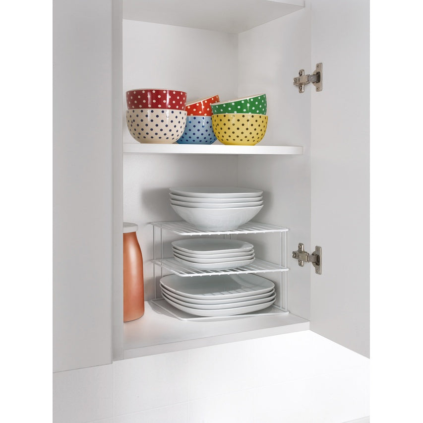 Eckschrankeinsatz "Silos" in Weiß – platzsparende, stabile Aufbewahrungslösung für Ihren Eckhängeschrank. Perfekt zur ordentlichen Ablage von Tellern und Küchenutensilien.