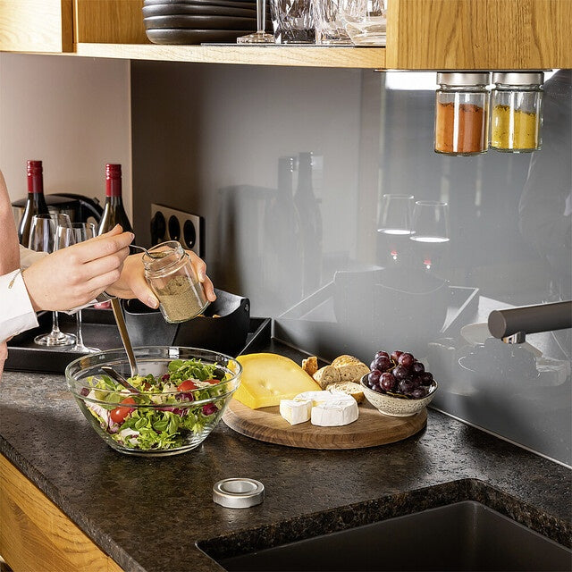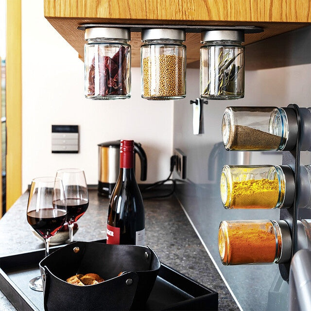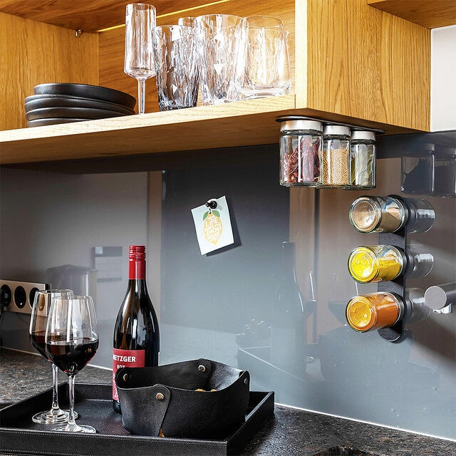 Verleihen Sie Ihrer Küche einen Hauch von Eleganz mit dem 3er-Set Feinkost-Magnetgläser von silwy. Diese modernen Gläser mit integrierten Magneten im Deckel haften sicher an der mitgelieferten Metallleiste und bieten eine platzsparende sowie stilvolle Lösung zur Aufbewahrung Ihrer Gewürze. Die Gläser sind leicht zu befüllen und können sowohl kopfüber als auch vertikal oder horizontal montiert werden.