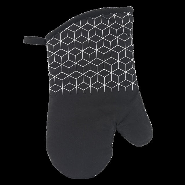 Schwarzer Grillhandschuh mit trendigem Dekor – perfekt für Grill, Ofen und Herd. Hergestellt aus 100% Baumwolle und CE‑zertifiziert für zusätzliche Sicherheit.