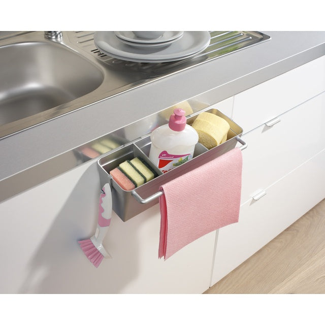 Der silberne Spülorganizer von RUCO ist die platzsparende Lösung für Ihre Küche. Hergestellt in Deutschland aus pflegeleichtem Kunststoff, sorgt er für Ordnung direkt an der Schranktür – innen oder außen einhängbar.