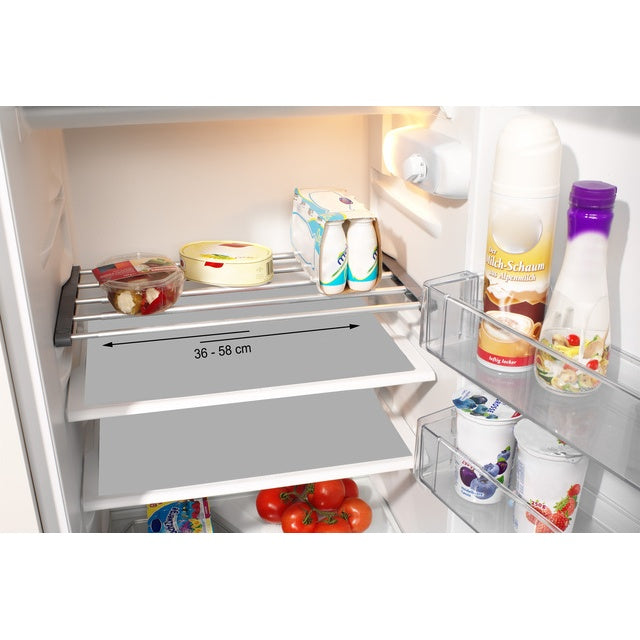 - Breitenverstellbar: 36–58 cm – passt in viele handelsübliche Kühlschränke
