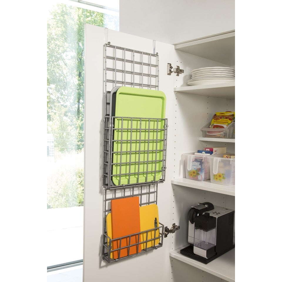 Der Tür-Orga Profi in Silber schafft Ordnung auf zwei Ebenen – ideal für Schneidebretter, Tabletts und flache Küchenutensilien. Einfach von innen an der Schranktür einhängen und den Platz im Hängeschrank optimal nutzen.