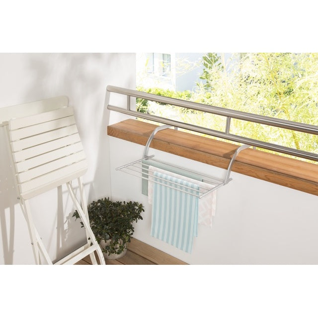 Der Universal Wäschetrockner Smart in Silber ist ein klappbarer, platzsparender Trockner aus rostfreiem Aluminium – ideal für Balkon, Heizkörper, Badewanne, Dusche oder Camping. Verstellbare Arme erlauben die Anpassung an jede Brüstung oder Heizung, dabei sorgen besonders dicke Trockenstäbe für schonendes Trocknen ohne Abdrücke.