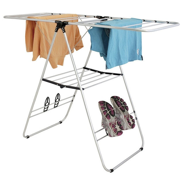 Der kompakte Alu-Wäscheständer bietet große Trockenfläche bei minimalem Stauraum. Schnell auf- und abklappbar, mit stabilem Stand für den Innen- und Außenbereich. Perfekt als Haushaltsständer oder für unterwegs.