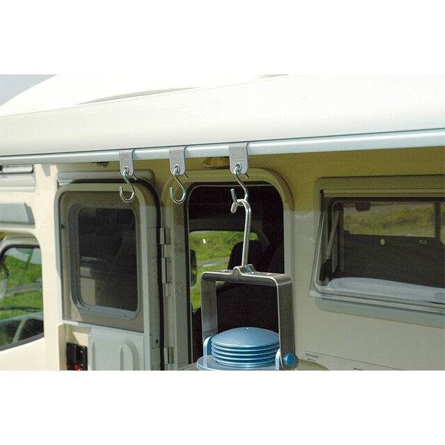 Entdecken Sie unser Haken Kit für Markisen, bestehend aus 6 robusten Haken. Diese wurden speziell entwickelt, um in die Frontblende Ihrer Markise eingezogen zu werden. Hängen Sie problemlos leichte Gegenstände wie Handtücher, Dekorationen oder Kleidung auf. Ideal für Camping, Wohnmobile und Balkone. Mit einem Gewicht von nur 0,8 kg ist das Kit leicht und einfach zu transportieren. Verleihen Sie Ihrem Außenbereich mehr Funktionalität und Stil mit diesen praktischen Haken!