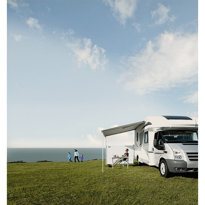 Der Thule Windschutz mit den Maßen 300 x 140 cm bietet eine einfache und schnelle Aufbaulösung dank seines automatischen Auf- und Abrollsystems. Das luftdurchlässige Gittergewebe ermöglicht es, Licht und eine leichte Brise durchzulassen, während es gleichzeitig Schutz vor neugierigen Blicken bietet. Seine flexible Montageoption ermöglicht sowohl die Installation zwischen Fahrzeug und Markisenstützfuß mittels praktischer Klettbänder als auch die freistehende Verwendung.