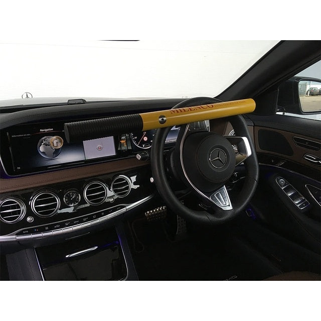Milenco Lenkradschloss in auffälligem Gelb – robustes Stahlschloss und effektive Wegfahrsperre für zusätzlichen Diebstahlschutz. Kompakter Aufbau und schnelle Montage machen es ideal für Pkw, Van und Reisemobile.