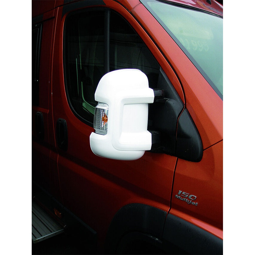 Milenco Spiegelprotektor – lange Version in Weiß: optimaler Spiegelschutz für Wohnwagenspiegel (Bj. 2007–2024). Robuste, wetterfeste Ausführung schützt zuverlässig vor Wind, Regen und leichten Beschädigungen.