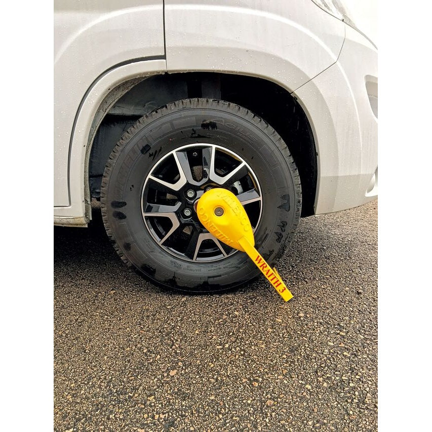 Schützen Sie Ihren Wohnwagen optimal mit der Radkralle Milenco Wraith 3. Dieses innovative Produkt wurde entwickelt, um maximale Sicherheit bei einfacher Montage zu gewährleisten. Dank der speziellen Radschraube mit integriertem Bein wird das Rad sicher fixiert, was ein Drehen unmöglich macht. Die auffällige gelbe Farbe sorgt für eine starke visuelle Abschreckung gegen Diebstahl und bietet gleichzeitig unübertroffene Widerstandsfähigkeit gegenüber Angriffen. Entscheiden Sie sich für die Milenco Wraith 3 und genießen Sie sorglosen Urlaub!