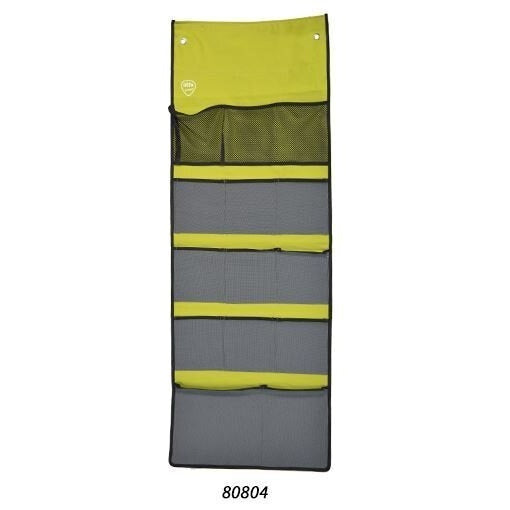 Praktischer DEFA Hänge-Organizer in frischem lime für ordentliche Aufbewahrung auf kleinem Raum. Mit 14 Fächern bietet er viel Platz für Kleinteile, Accessoires und Utensilien – ideal für Bad, Kinderzimmer, Schrank oder unterwegs.