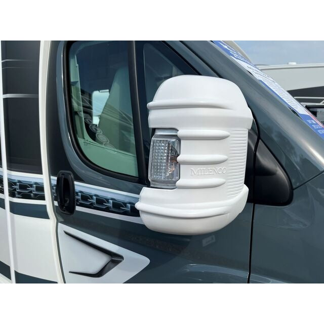 Spiegelprotektorsatz für Fiat Ducato X250 (ab Bj. 2025) – weißer, passgenauer Spiegelschutz aus robustem Kunststoff. Schützt Außenspiegel zuverlässig vor Beschädigungen durch Gegenverkehr, Äste oder Verkehrsschilder.