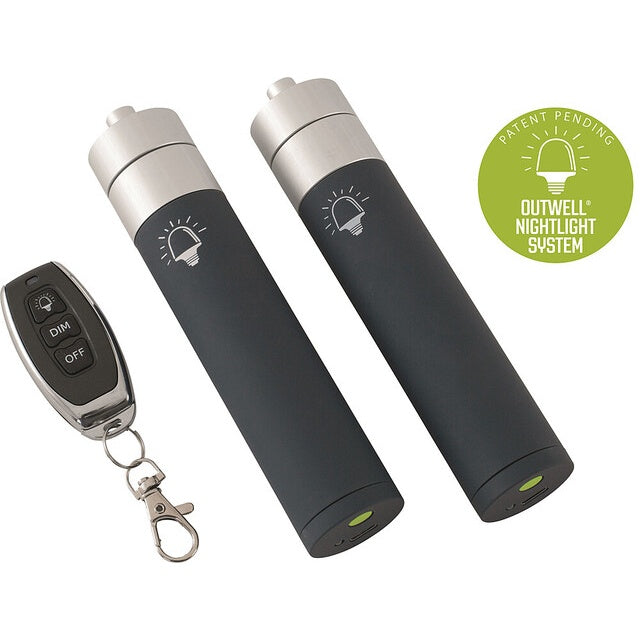 Outwell Lichtset in Night Blue – die ideale Zeltbeleuchtung für Busvorzelte. Drei Helligkeitsstufen und eine Funkfernbedienung sorgen für komfortable, stufenlose Beleuchtung beim Camping.