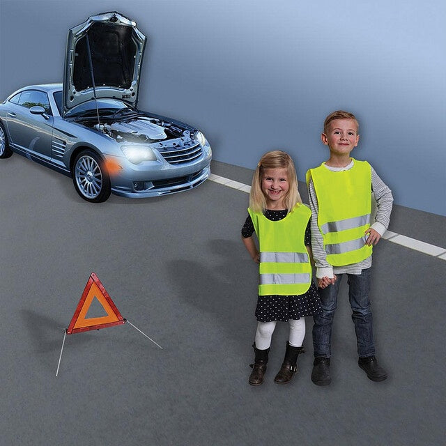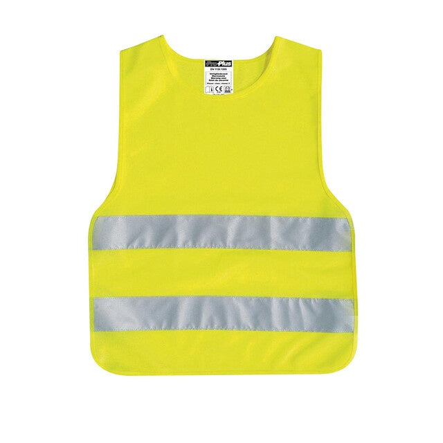 Die Warnweste ProPlus für Kinder in auffälligem Gelb bietet Sicherheit im Straßenverkehr. Ideal für Aktivitäten wie Joggen, Radfahren oder auf dem Schulweg, ist sie unerlässlich, wenn gute Sichtbarkeit erforderlich ist.