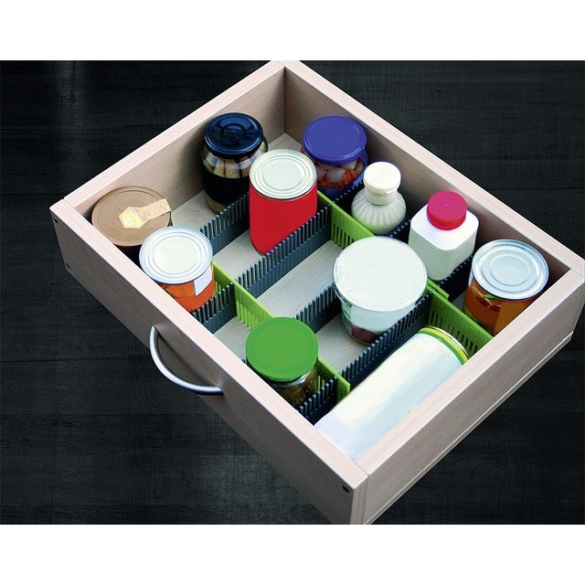 Ideal geeignet für Gläser, Tassen, Flaschen, Haushaltsutensilien, Hygieneartikel, Lebensmittelbehälter, Büromaterial und kleinteilige Werkzeuge. Die Stauleisten sind einfach zusammenzustecken und ergeben schnell einen stabilen, rutschfesten Schubladeneinsatz.