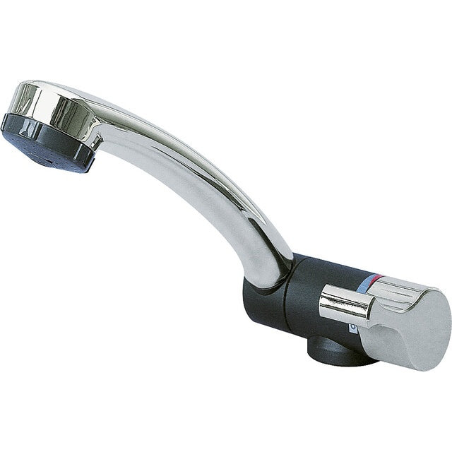 Entdecken Sie den Einhebelmischer REICH A3 Multi - Mix Duett in elegantem Chrom und Schwarz. Dieser hochwertige Wasserhahn kombiniert modernes Design mit Funktionalität. Er verfügt über eine dreh- und schwenkbare Brause sowie einen praktischen Mikroschalter. Die Auslauf-Optionen lassen sich bequem auf Strahl oder Breitstrahl einstellen, um Punkt- oder Flächenbewässerung zu ermöglichen.