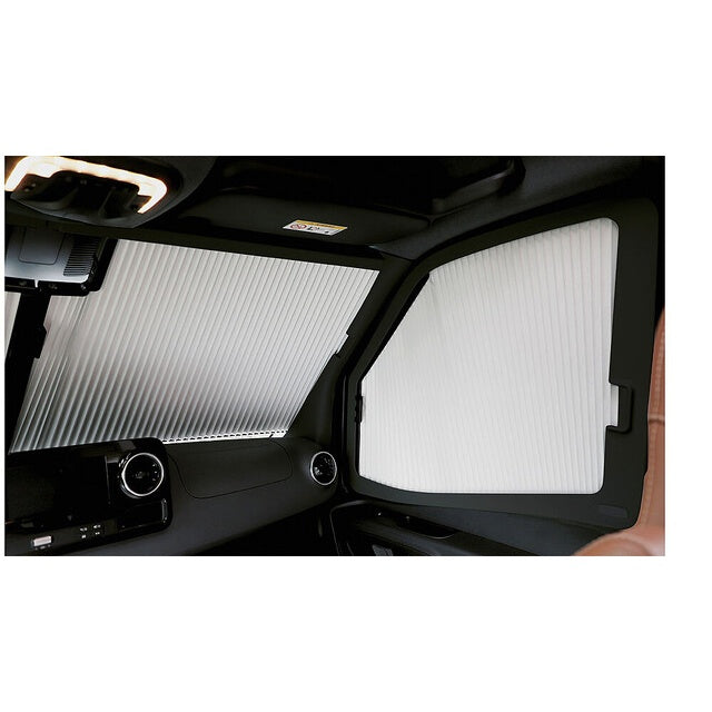 - Blickdichtes Plissee-Faltsystem für die Frontscheibe mit integriertem Magnetverschluss (links-rechts).